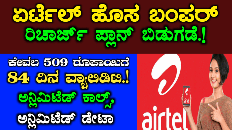 Airtel best recharge plans: ಏರ್ಟೆಲ್ ಸಿಂಪಲ್ ಮತ್ತು ಕಡಿಮೆ ಬೆಲೆಯ ರೀಚಾರ್ಜ್ ಪ್ಲಾನ್ಗಳು: ಕೇವಲ ₹509ಕ್ಕೆ 84 ದಿನಗಳ ವ್ಯಾಲಿಡಿಟಿ! ನಮಸ್ಕಾರ ಸ್ನೇಹಿತರೆ, ನೀವು ಏರ್ಟೆಲ್ …